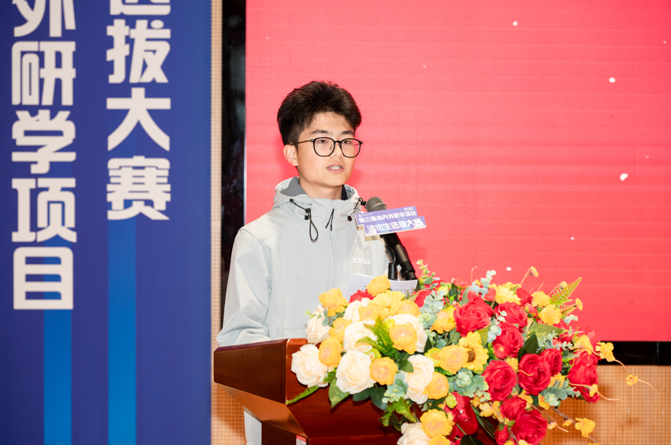 吴雨院长在开幕式致辞中表示,研学资优生选拔大赛作为学校国际化办学的特色品牌活动,已连续成功举办三届,累计为众多学子搭建了链接海外优质教育资源的桥梁。学校设置丰厚奖学金,既是对优秀学子的激励,更承载着“胸怀家国、放眼世界” 的殷切期许,希望获奖学子能在跨文化交流中汲取知识、传播中国声音。比赛开始之前,往届选手代表徐祥瑞分享了备赛心得与研学憧憬,字里行间尽显青年学子的锐意进取。
